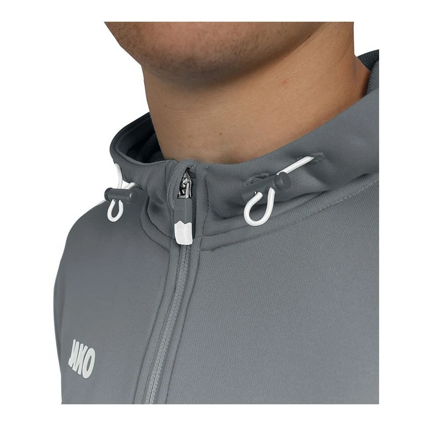 - auf der Kapuzenjacke der Linie ist der typische Kontraststreifen in Kombination mit den JAKO Dots im Ärmel- und Schulterbereich zu sehen